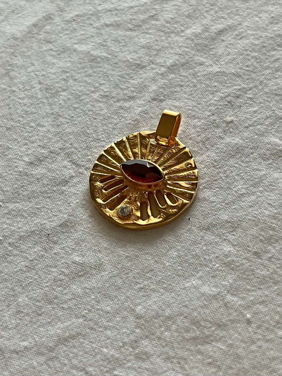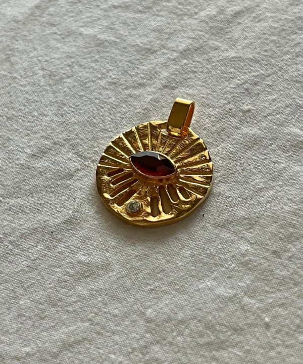 Su forma orgánica e irregular lo convierte en un amuleto único, pensado para mujeres que buscan joyas con carácter.