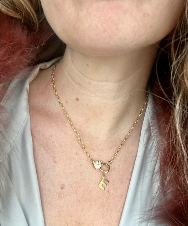 El contraste entre la fuerza de la cadena y la sutileza del cierre crea una pieza equilibrada y elegante, perfecta para llevar sola y elevar cualquier look. Además, Liz es totalmente personalizable: puedes añadirle tu charm favorito y convertirla en un collar único, hecho a tu manera.