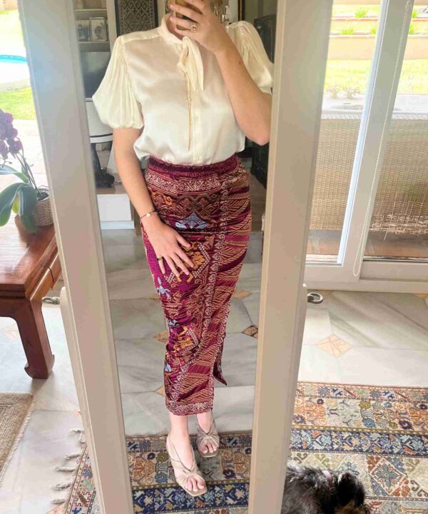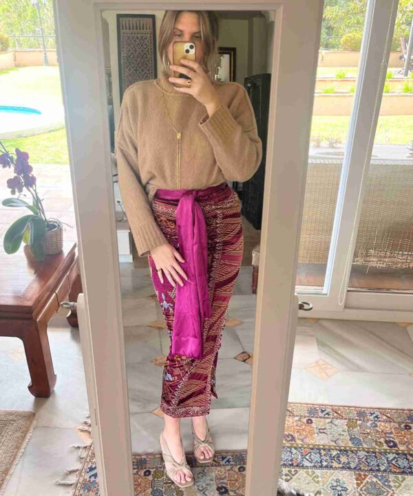 Si te gusta ir diferente y buscabas algo original con lo que destacar, ¡nuestras nuevas faldas estilo balinés son para ti! Hechas a mano con bordados dorados y colores vibrantes, son piezas únicas y exclusivas, con pocas unidades disponibles.