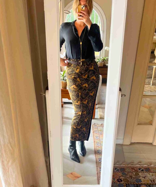 Estas faldas están confeccionadas en un tejido con licra, lo que las hace increíblemente cómodas y se adaptan perfectamente a tu cuerpo. Llevan un cinturón incluido con flecos que aportan un movimiento especial y realzan la cintura, creando una silueta estilizada y favorecedora.